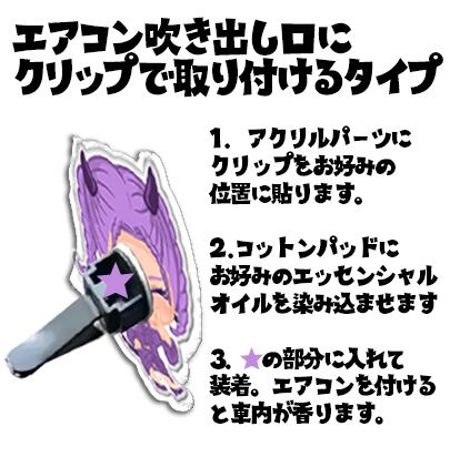 アクリルのパーツとクリップをくっつけて組み立てるエアーフレッシュナー。